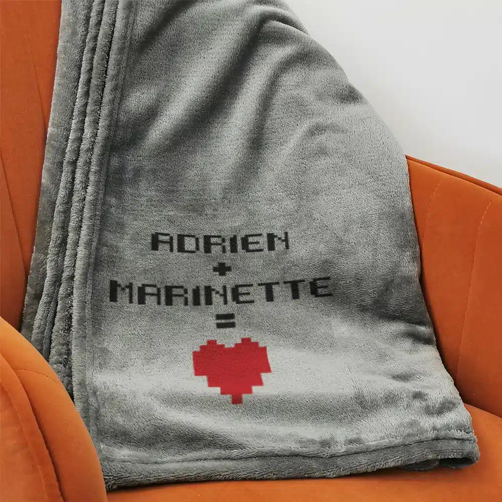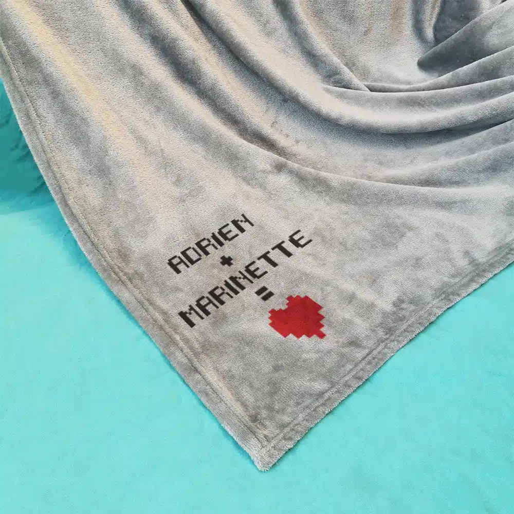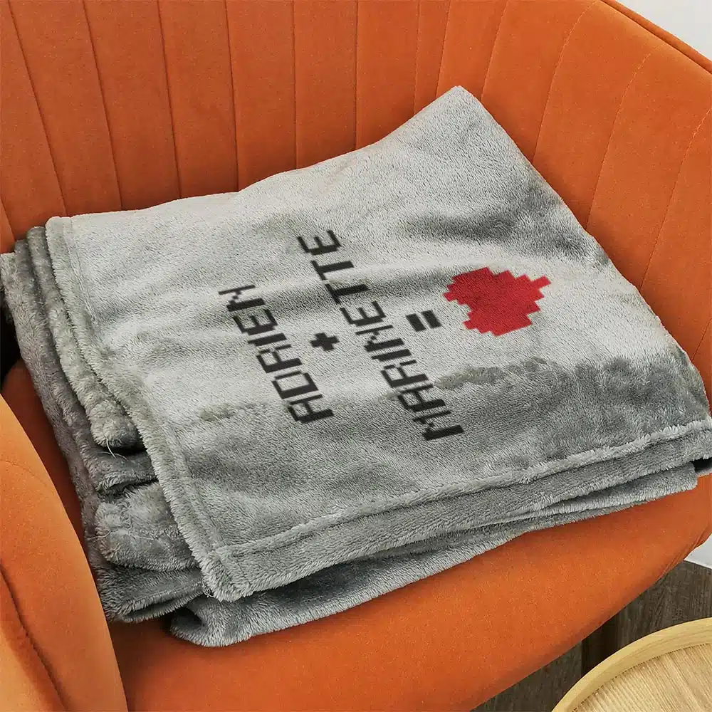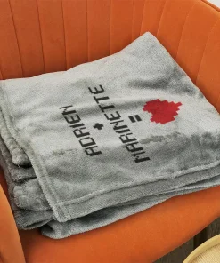 Pour être bien au chaud chez soi, rien ne vaut ce plaid gris tout doux ! Avec sa personnalisation au design pixellisé avec son coeur rouge et les 2 prénoms, vous ferez forcément plaisir. Devant la télé ou tout simplement sur votre fauteuil, vous aurez le sentiment d’être sur un petit nuage grâce à sa douceur. C’est aussi un cadeau idéal pour tous les frileux(ses) !