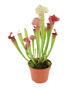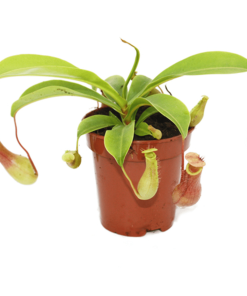 Les Nepenthes sont quant à elles connues pour leurs feuilles transformées en urnes ou en pichets. Ces pichets sont des structures tubulaires et creuses, souvent colorées, qui se développent à partir de la tige de la plante. Ils attirent, capturent et digèrent les insectes et autres petits organismes pour obtenir des nutriments supplémentaires, car ces plantes poussent souvent dans des sols pauvres en éléments nutritifs. Elle ne supporte pas le soleil direct. Une luminosité moyenne à faible lui convient mieux