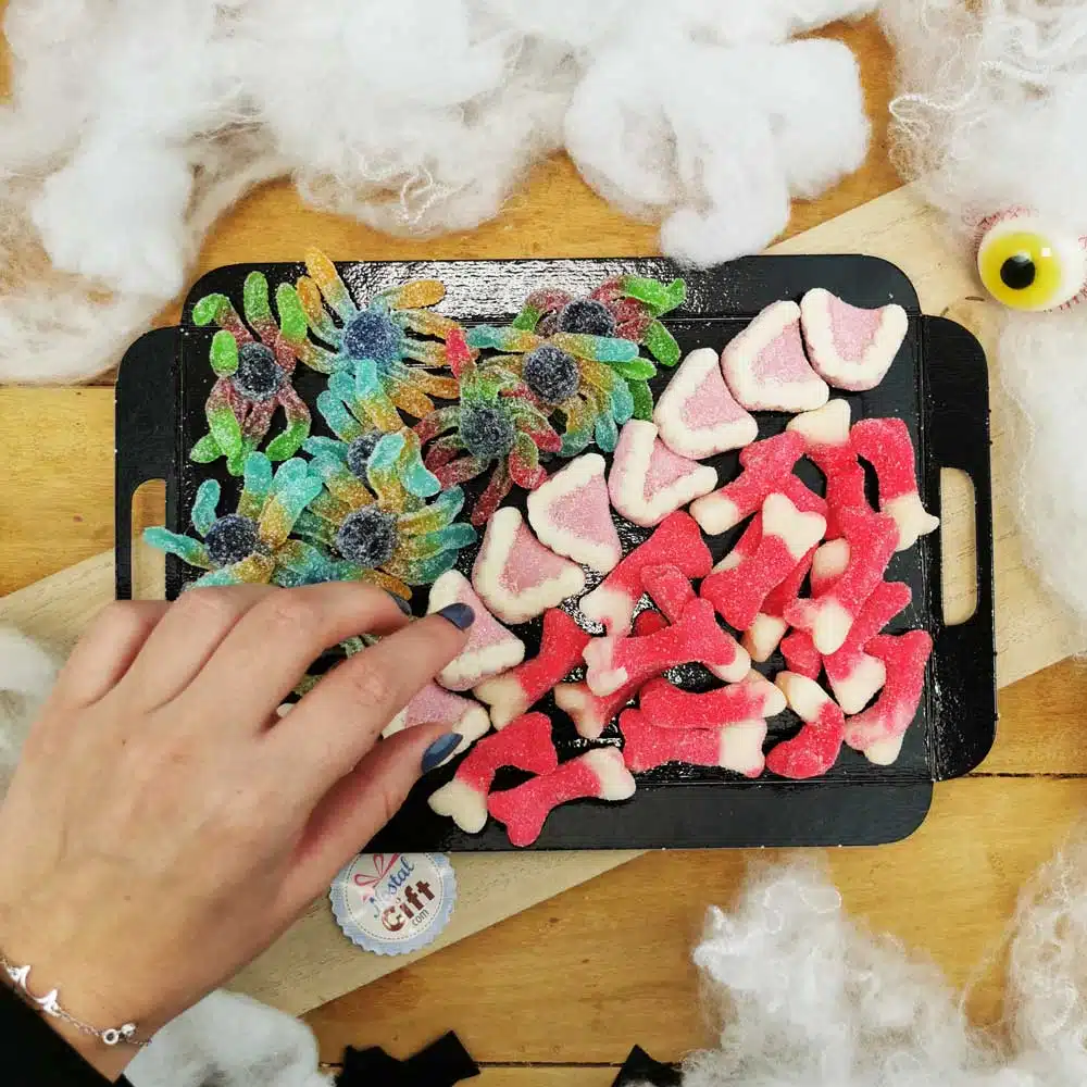 Plateau de bonbons Halloween (Souris, araignées, yeux)