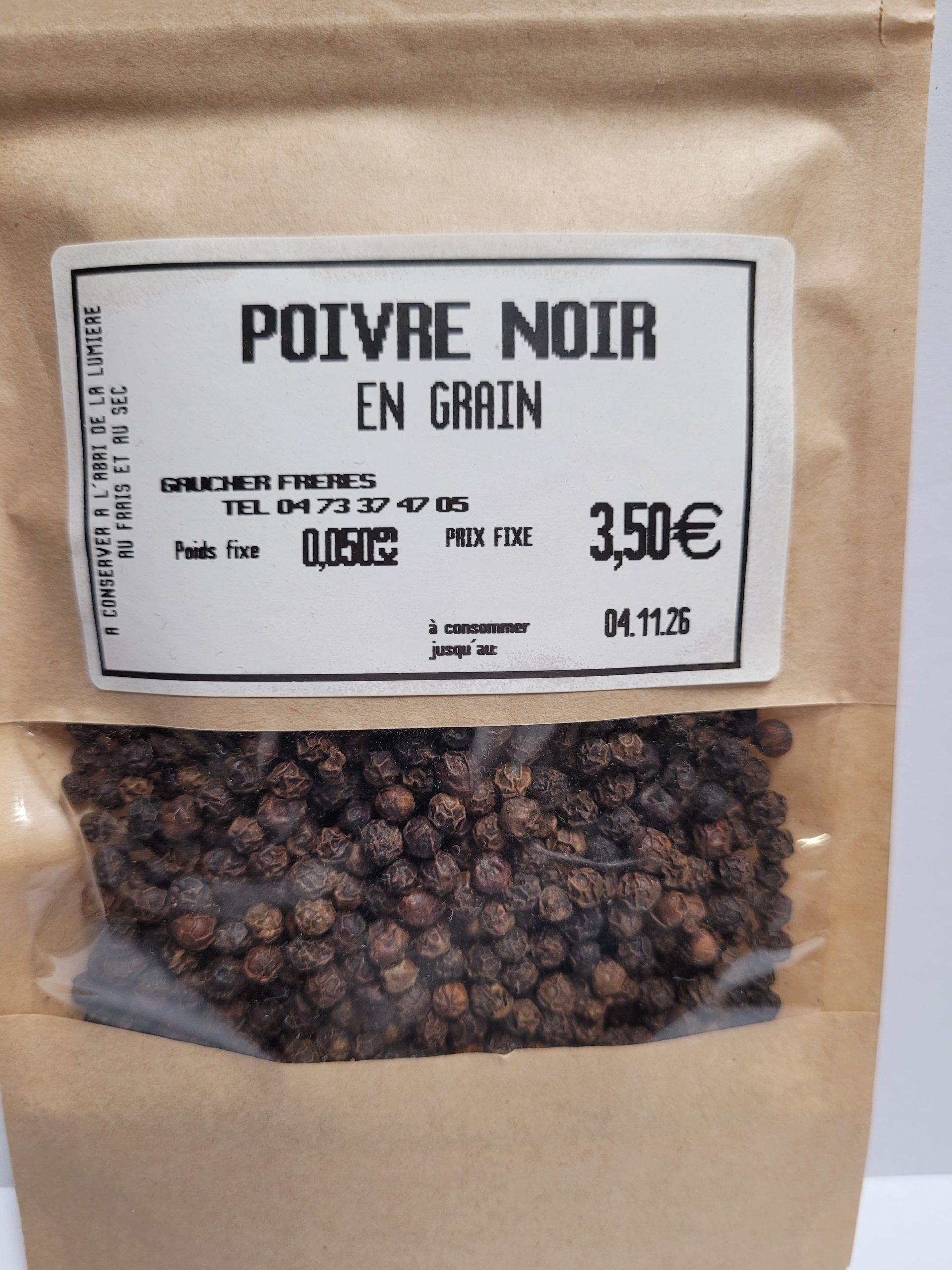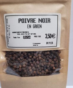 Maison Gaucher présente son Poivre Noir en Grain, une option polyvalente pour agrémenter vos plats de cette saveur piquante et caractéristique.