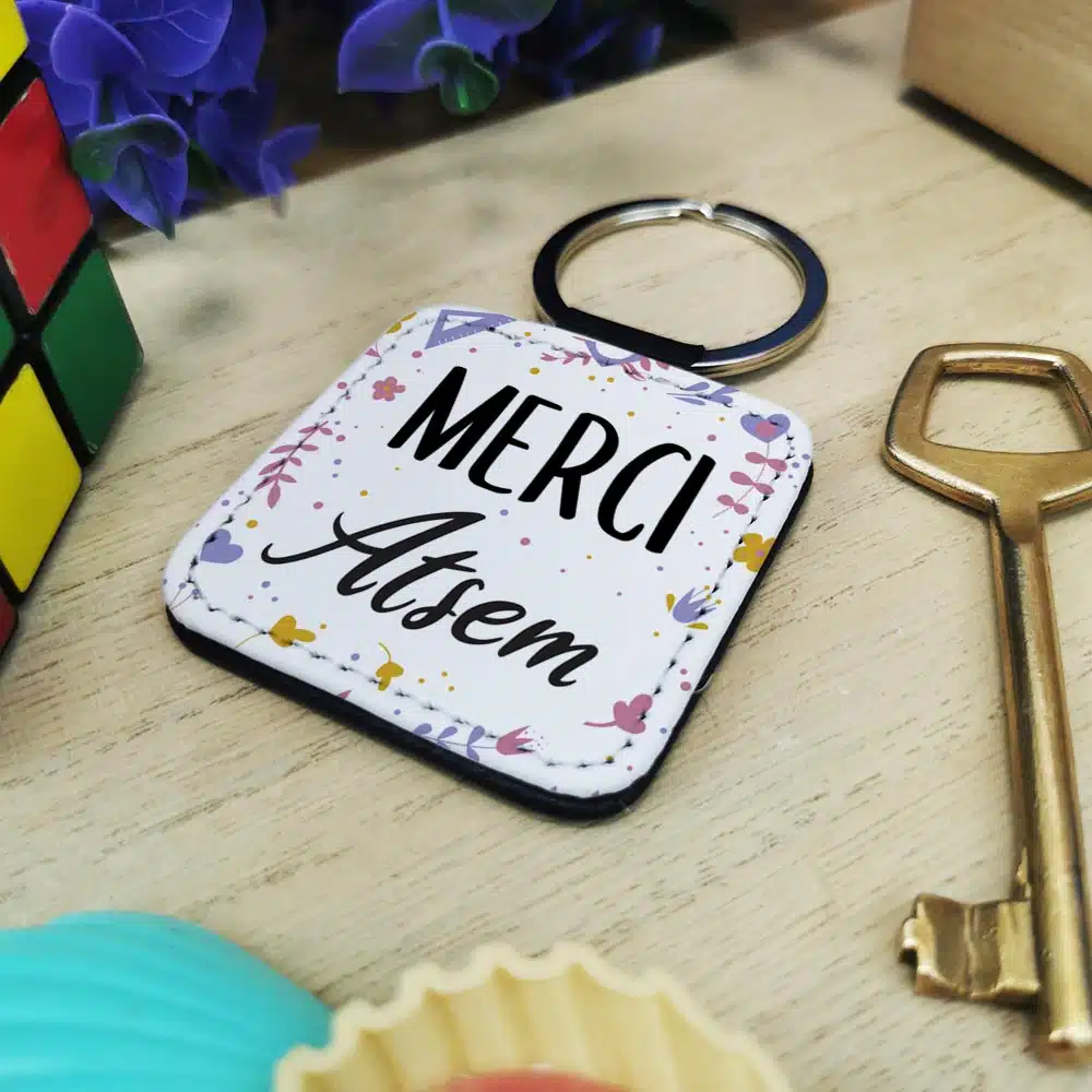 L’impression est réalisée dans notre atelier en France, pour un résultat de qualité. Le porte-clé est également équipé d’un anneau en métal pour attacher facilement aux clés.