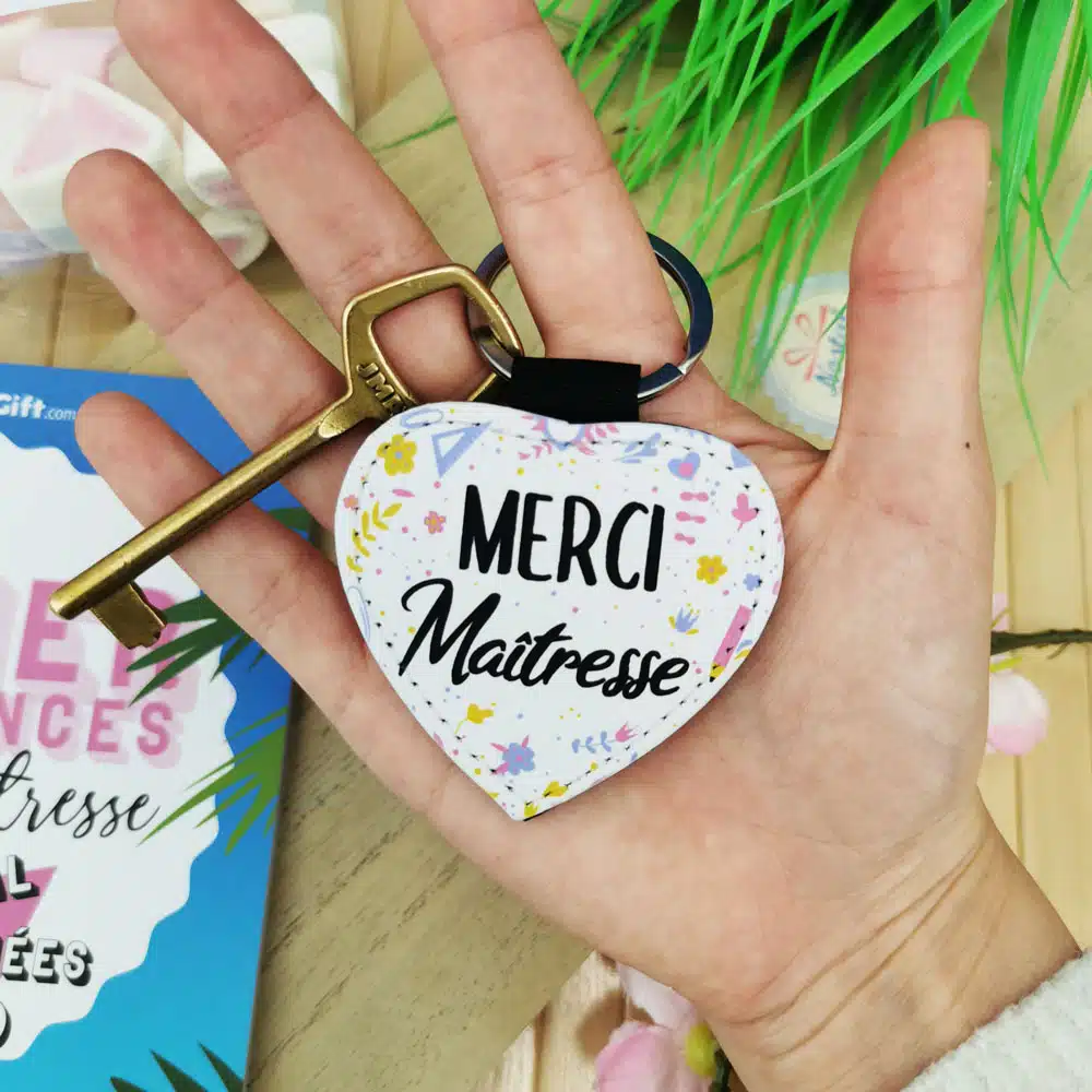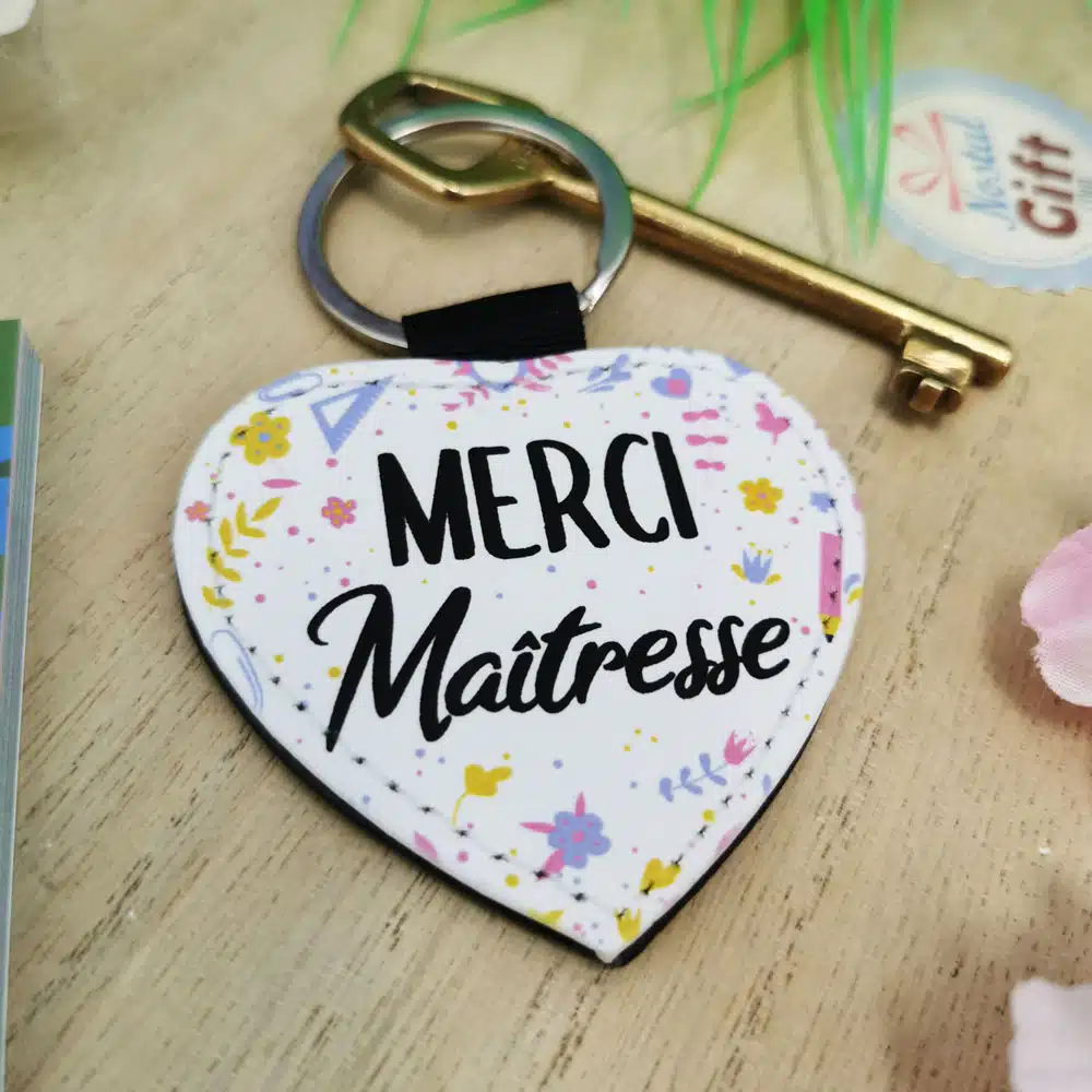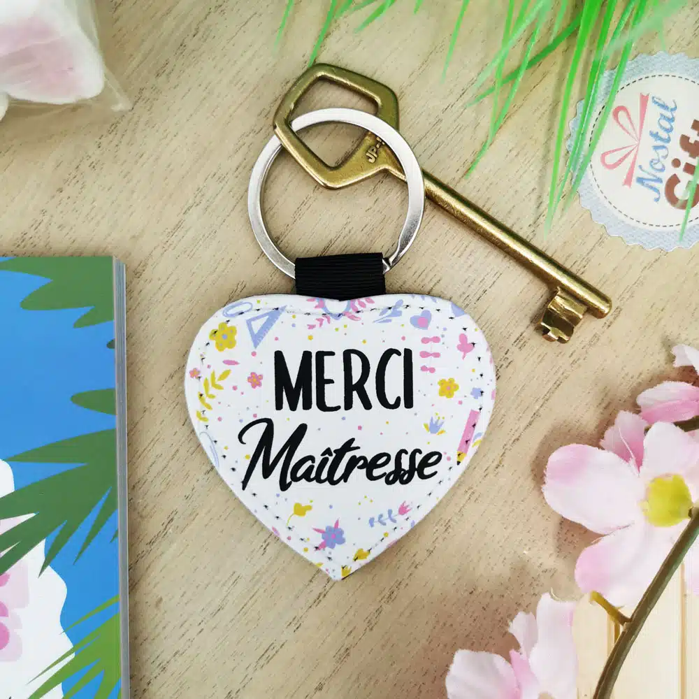 Porte clé “Merci maîtresse” cœur – Collection floral