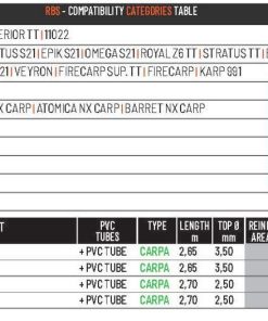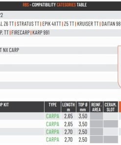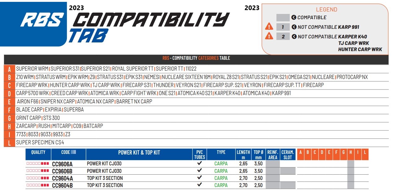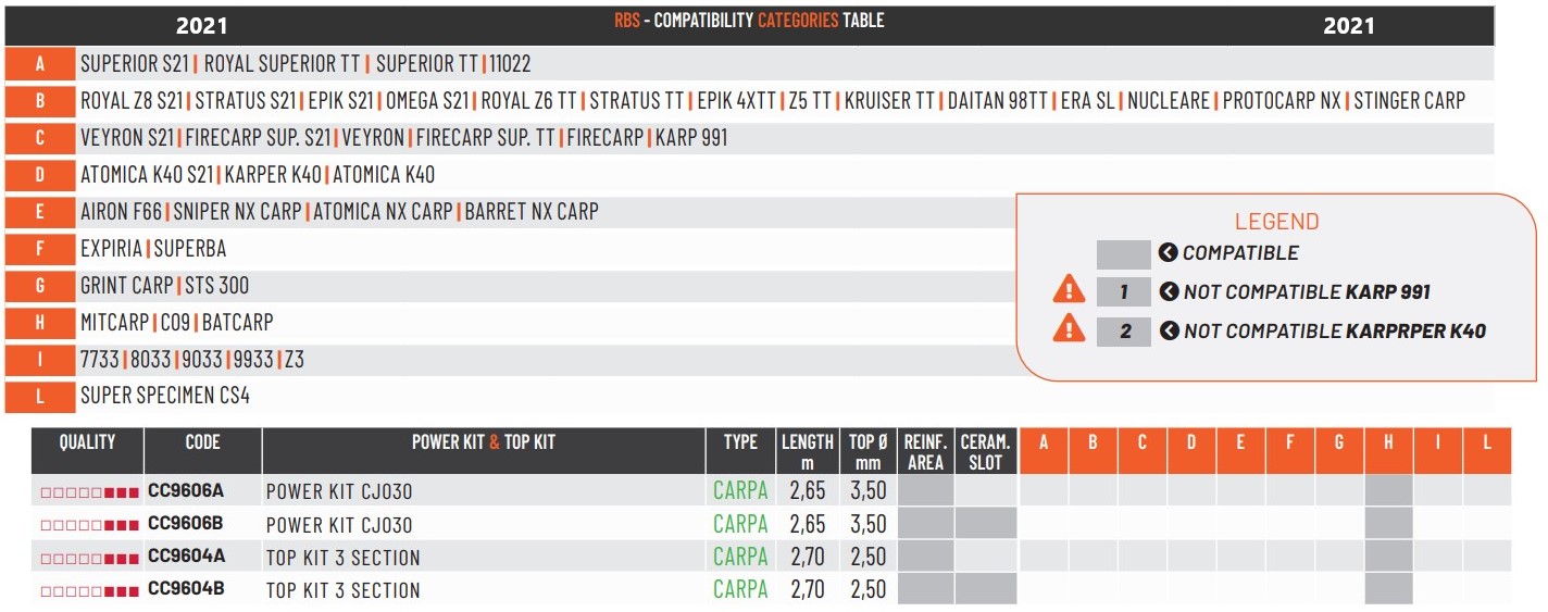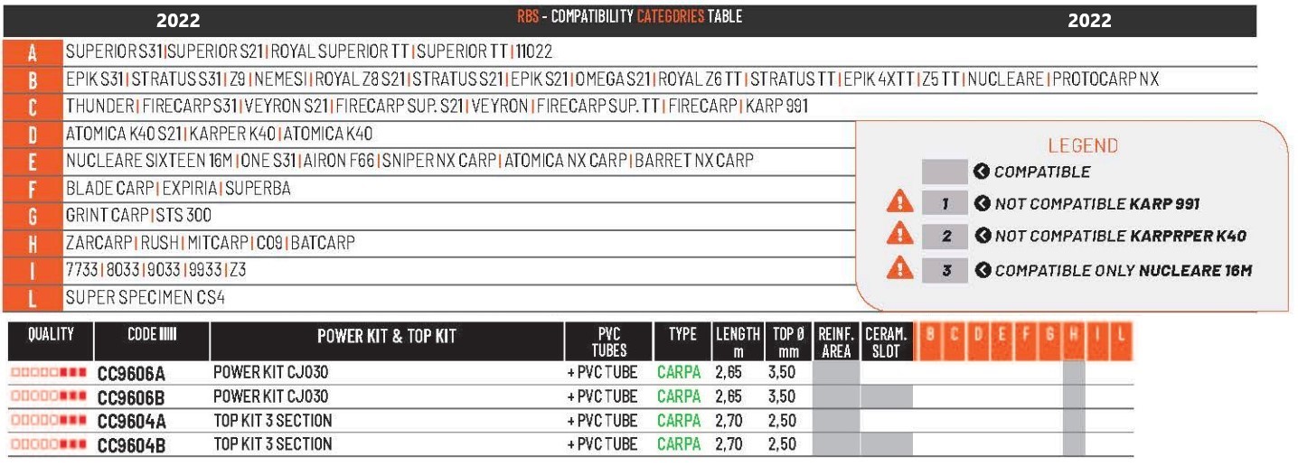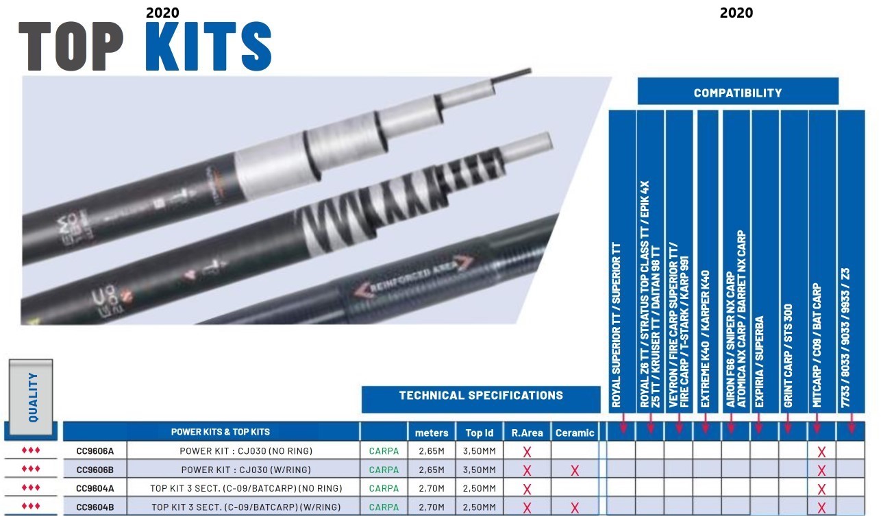 Kits Colmic de la gamme CJ , spécialement compatibles avec les cannes Colmic indiquées dans le tableau.
