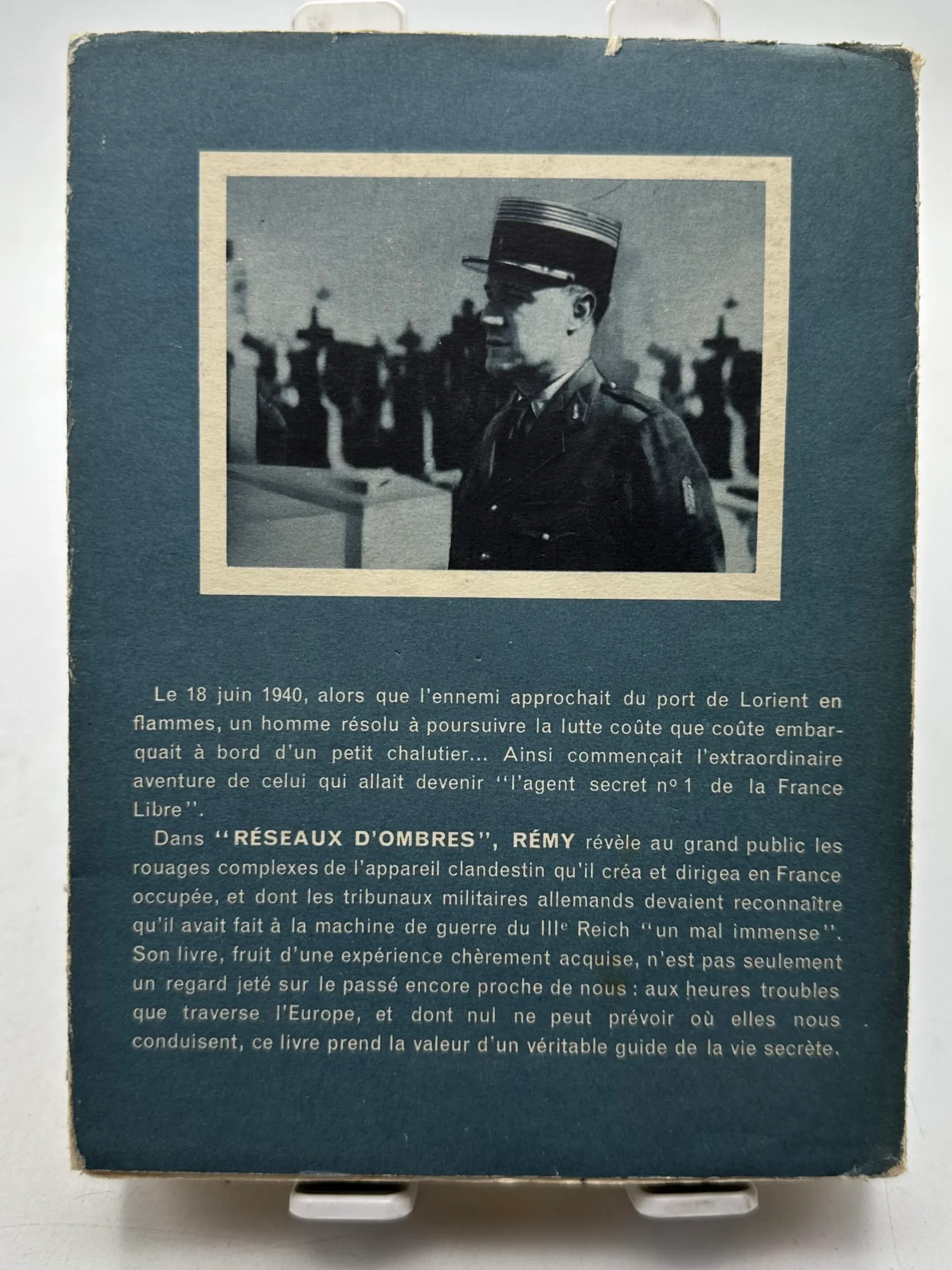 Dans « RÉSEAUX D’OMBRES », RÉMY révèle au grand public les rouages complexes de l’appareil clandestin qu’il créa et dirigea en France occupée, et dont les tribunaux militaires allemands devaient reconnaître qu’il avait fait à la machine de guerre du IIIe Reich » un mal immense » Son livre, fruit d’une expérience chèrement acquise, n’est pas seulement un regard jeté sur le passé encore proche de nous : aux heures troubles que traverse l’Europe, et dont nul ne peut prévoir où elles nous conduisent, ce livre prend la valeur d’un véritable guide de la vie secrète.