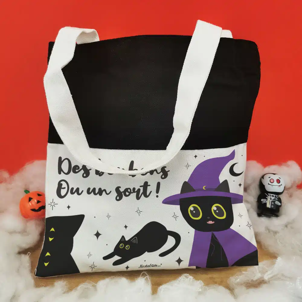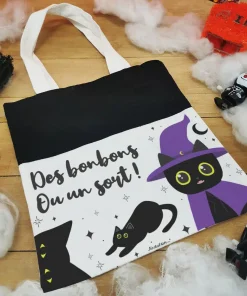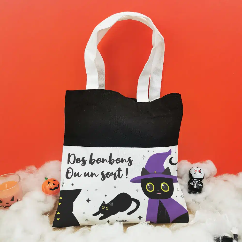 Sac Bonbons – Chat noir d’Halloween “Des bonbons ou un sort”