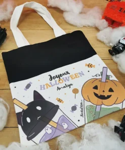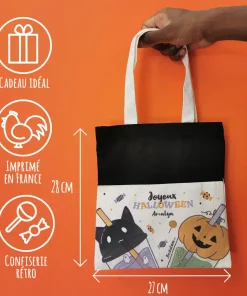 La chasse aux bonbons pour Halloween va bientôt commencer ! Votre enfant sera bien équipé avec ce très joli sac personnalisé. N’hésitez pas à consulter nos bonbons Halloween pour remplir ce sac de douceurs !
