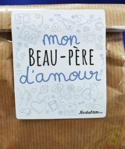 Offrez un cadeau original pour un anniversaire ou Noël avec notre sachet bonbon, sur lequel est imprimé “Mon beau-père d’amour” sur l’avant du sachet en Bleu .