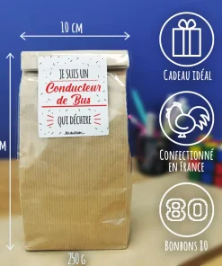 Faites plaisir avec ce sachet bonbon 80 rétro. Le parfum de bonbons qui se dégage du sachet fera retomber en enfance. Le goût des bonbons quant à lui fera immédiatemment plaisir. N’attendez pas et montrez à quoi point chauffeur de bus est important pour vous.