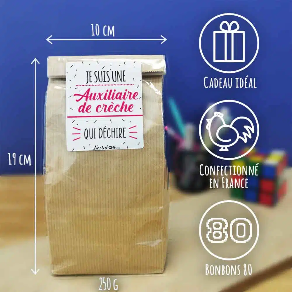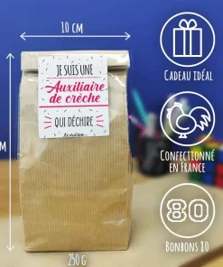 Sachet bonbon 80 “Je suis une auxiliaire de crèche qui déchire”- Cadeau pour la fin de l’année scolaire