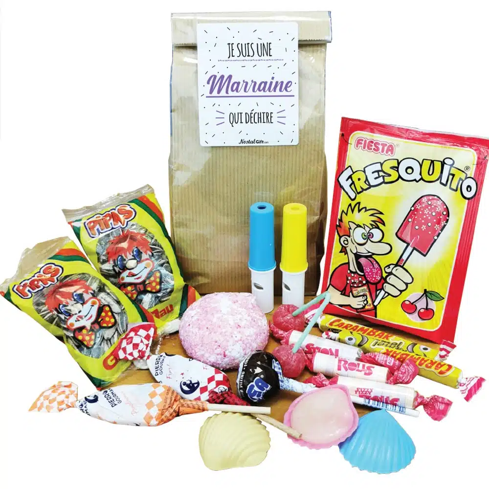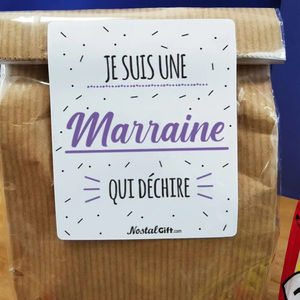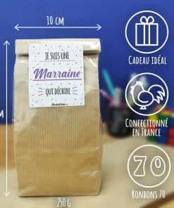 Sachet Bonbon des années 70 “Je suis une marraine qui déchire” – Cadeau Marraine