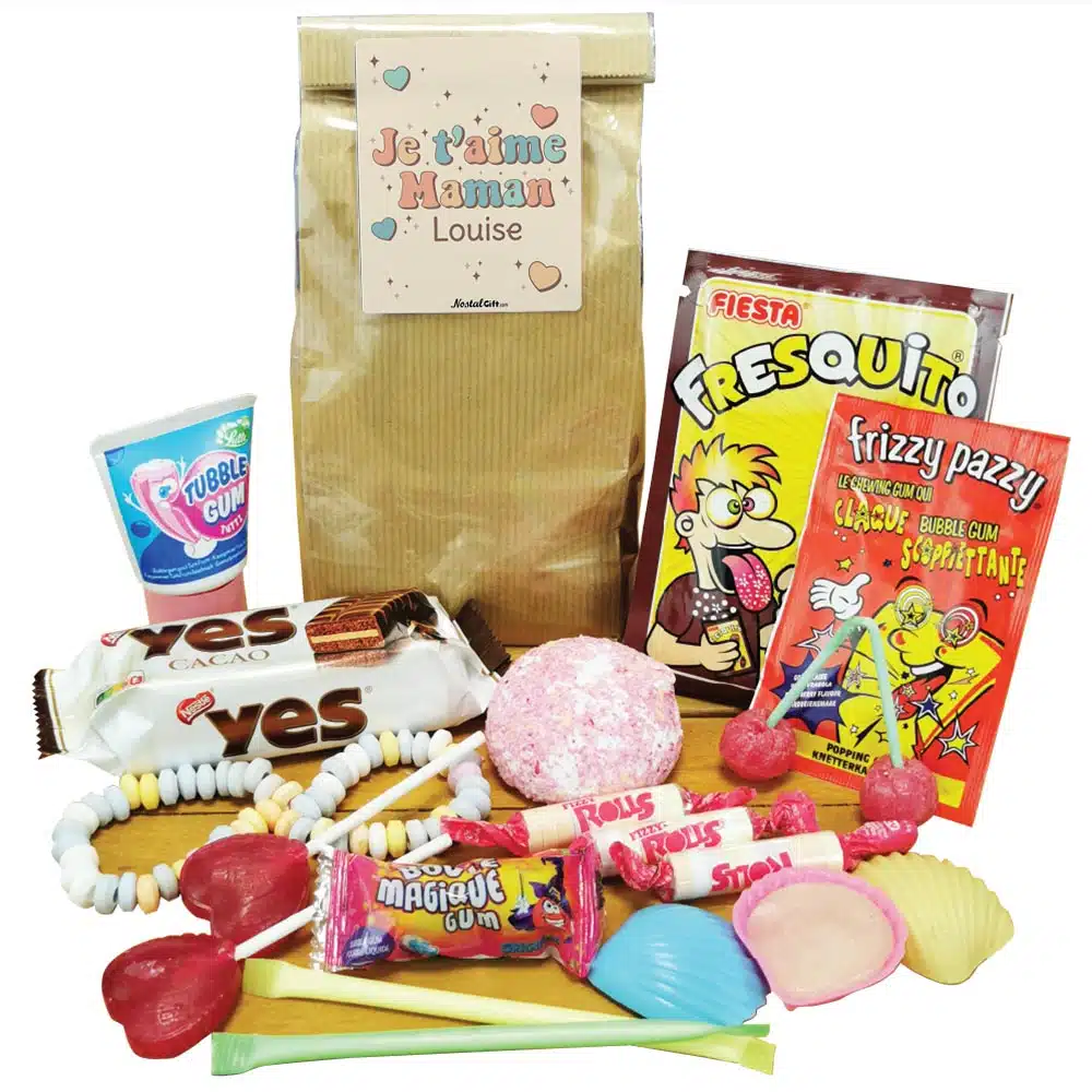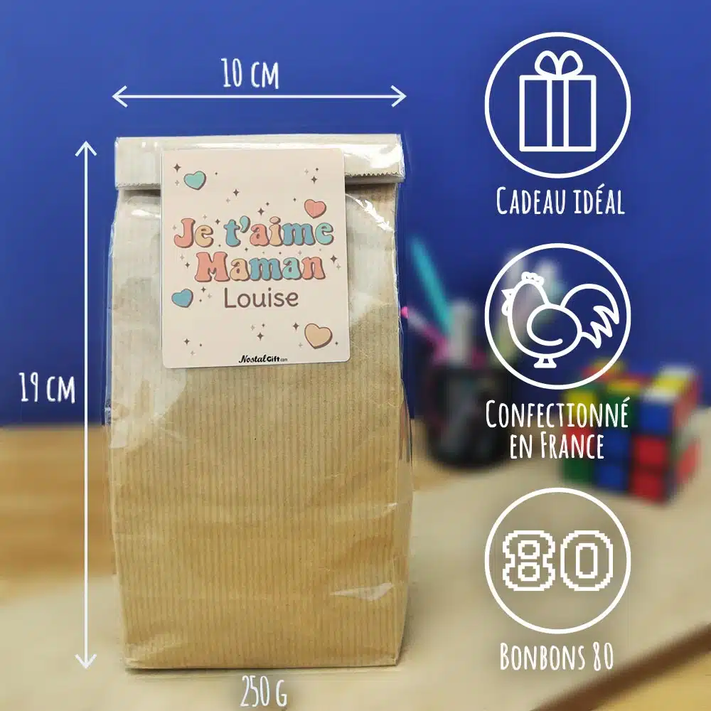 Sachet Bonbon années 80 -“Je t’aime Maman” personnalisé