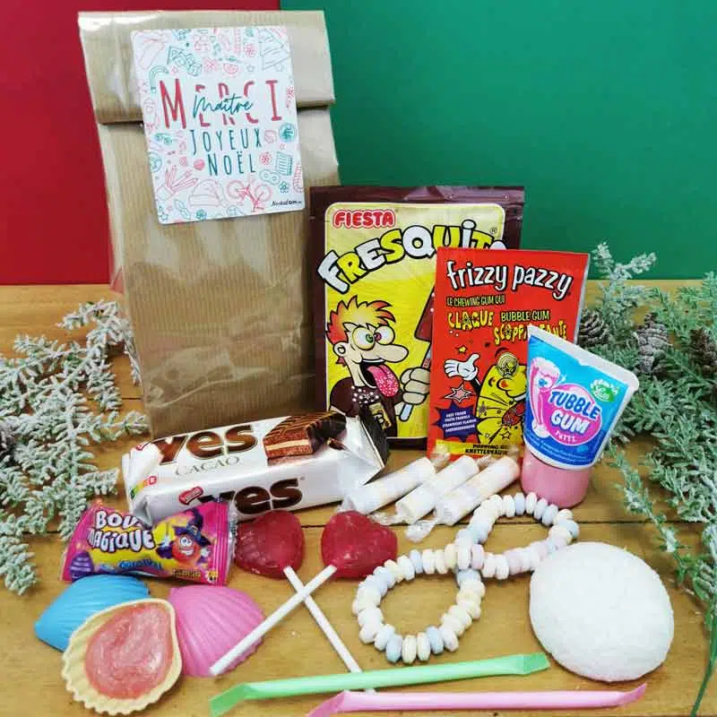 Sachet Bonbons des années 80 : “Merci Maître – Joyeux Noël” – (Collection Noël)