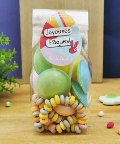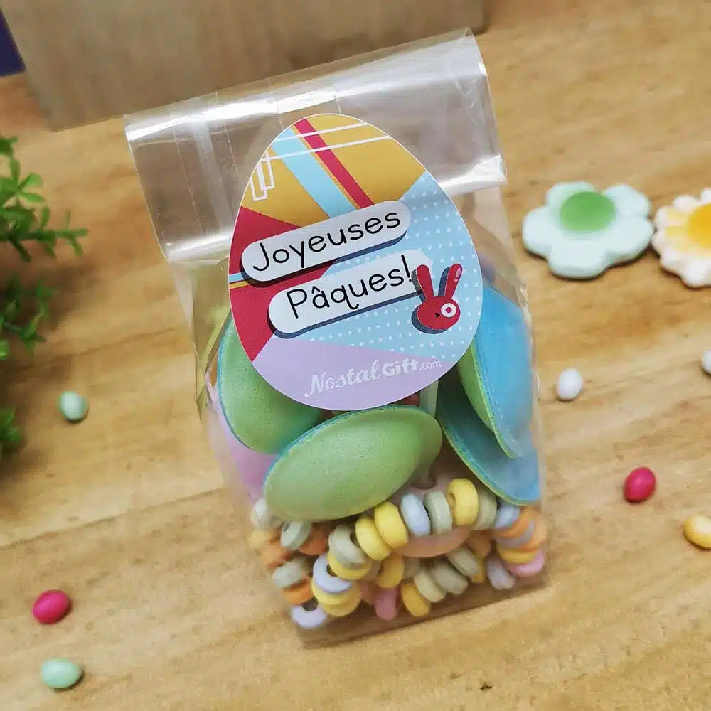 Ce petit assortiment est parfait pour les gourmands de dextrose à Pâques ! Retrouvez le goût acidulé des soucoupes, le croquant des lollies et les irresistibles colliers de notre enfance. Parfait pour une petite régression gourmande.