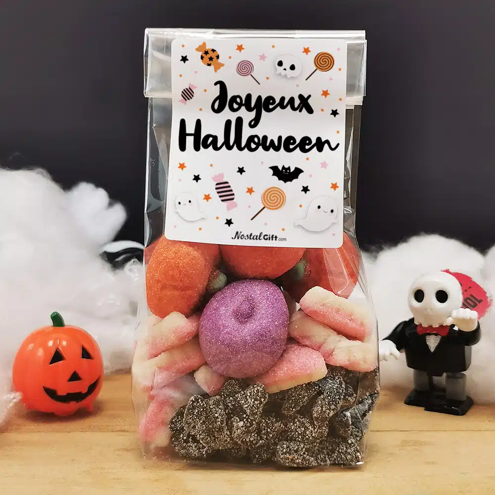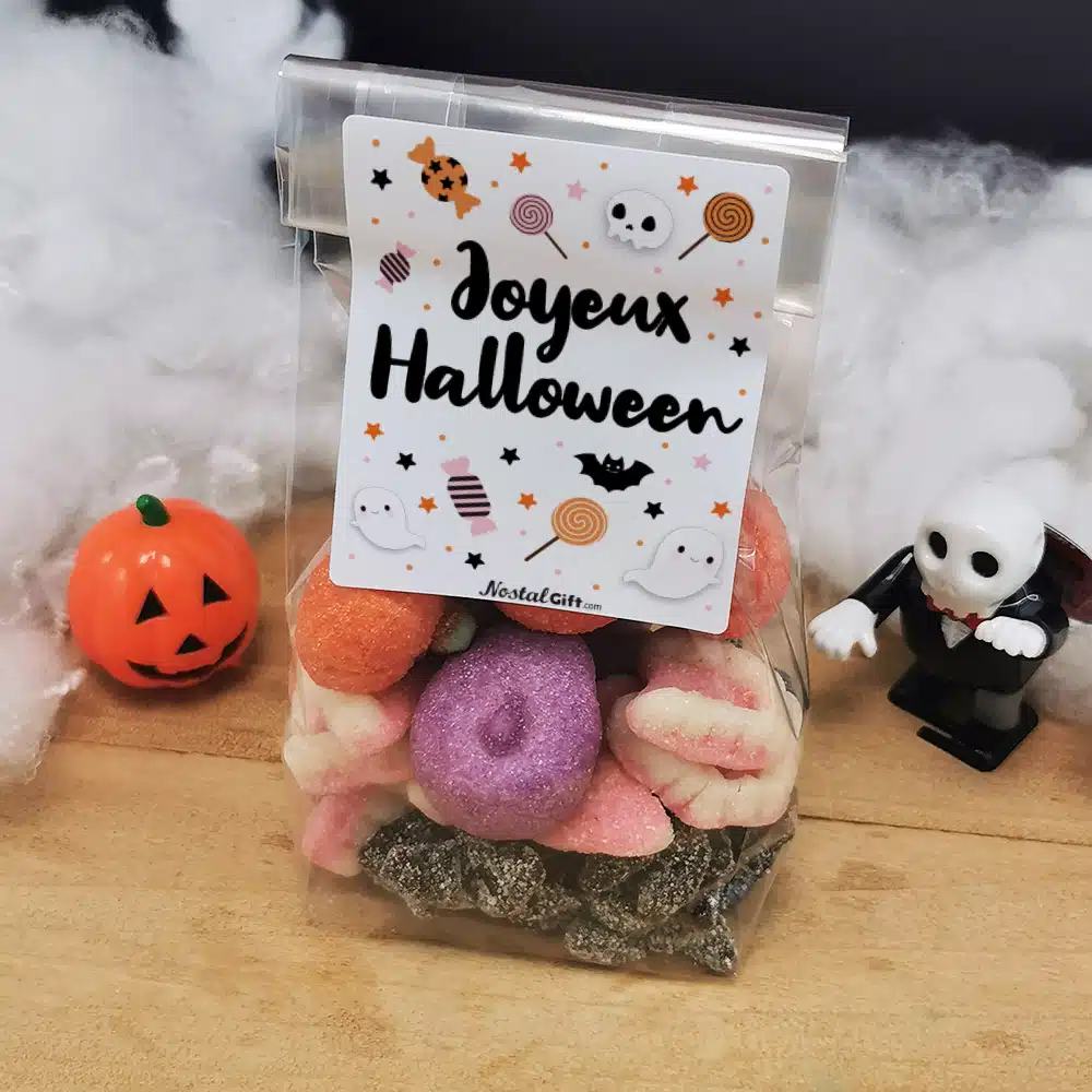 – Emballage : livré dans un sachet bonbon avec son étiquette halloween