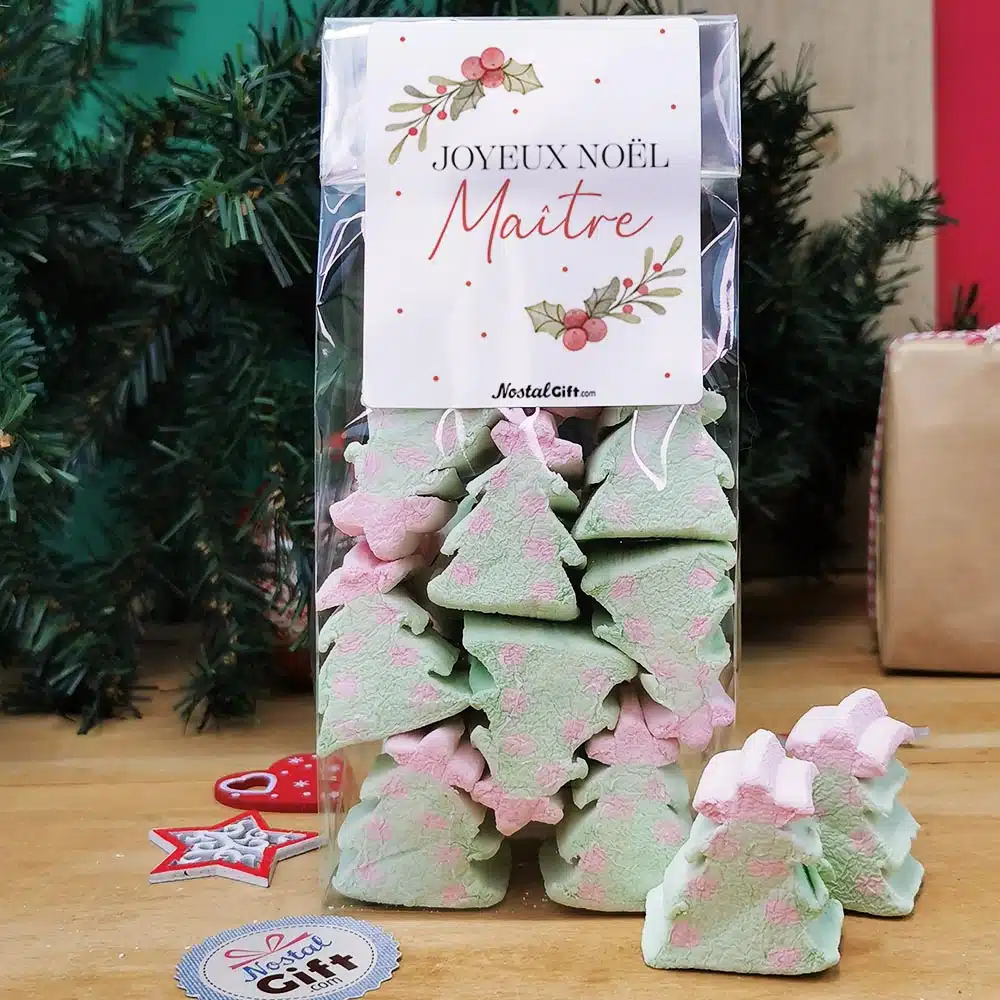 Sachet de guimauve sapin de Noël x 10 – “Joyeux Noël Maître”