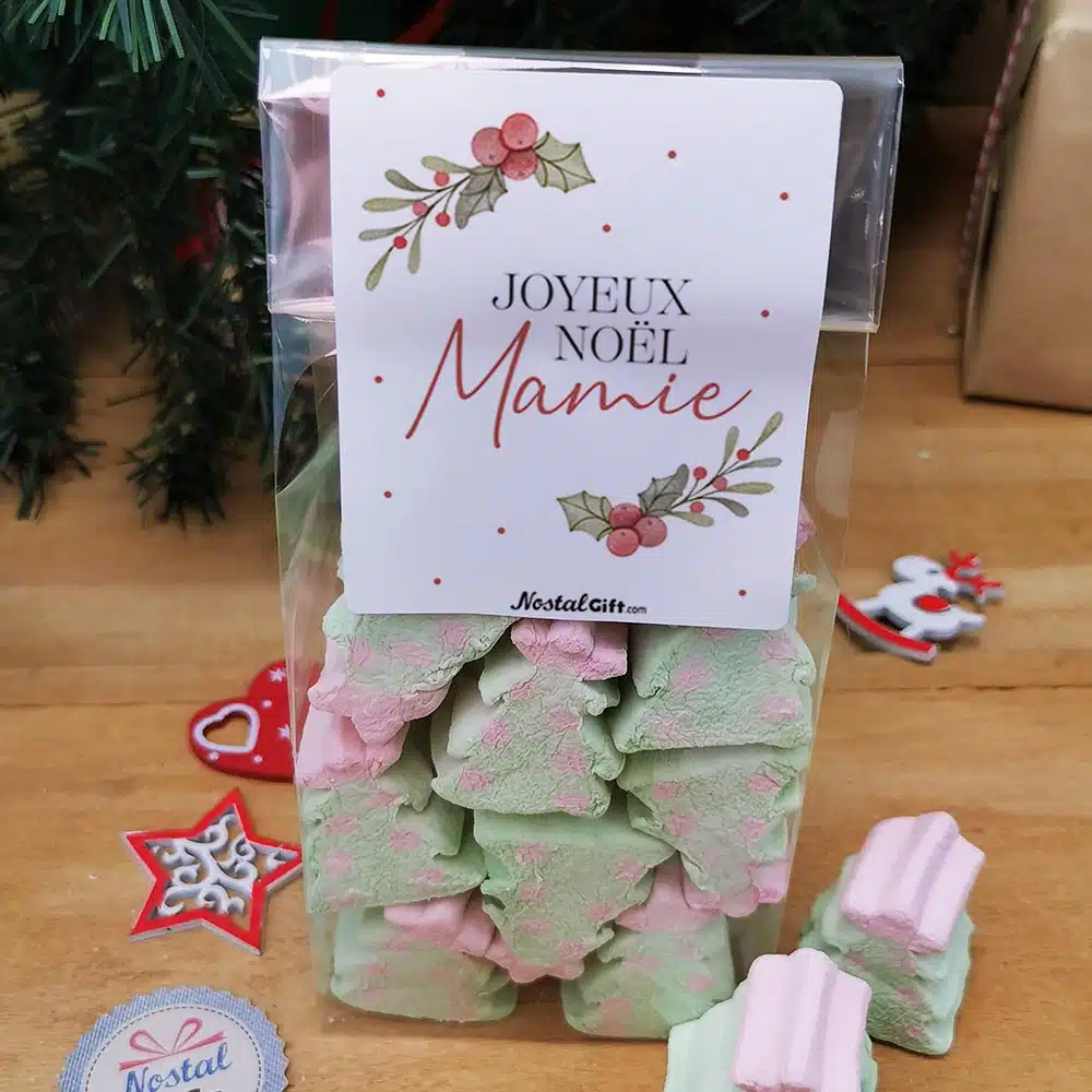 Sachet de guimauve sapin de Noël x 10 – “Joyeux Noël Mamie”