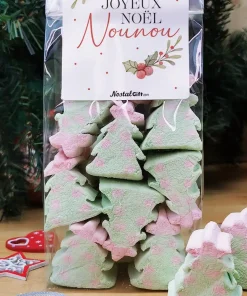 Sachet de guimauve sapin de Noël x 10 – “Joyeux Noël Nounou”