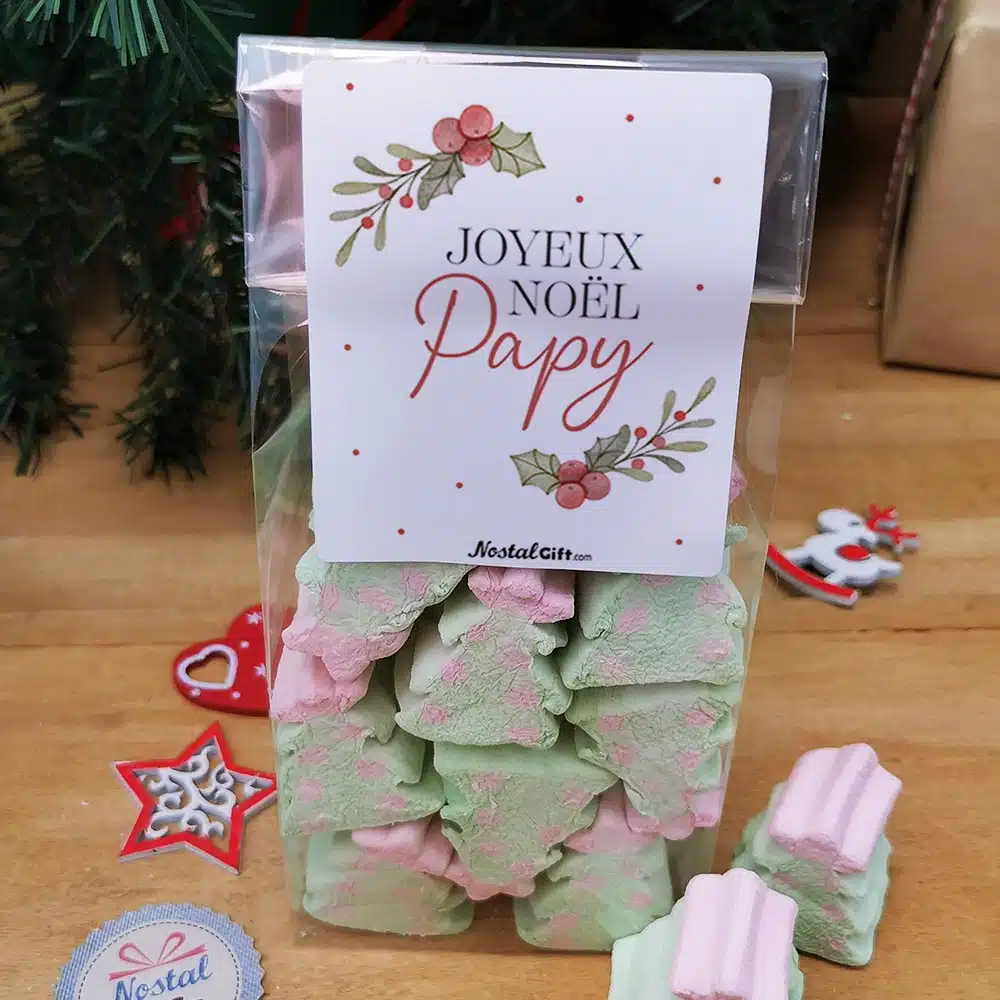Sachet de guimauve sapin de Noël x 10 – “Joyeux Noël Papy”