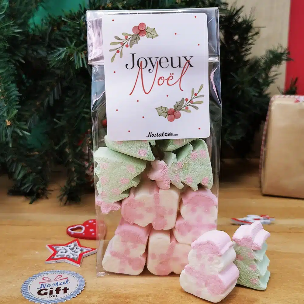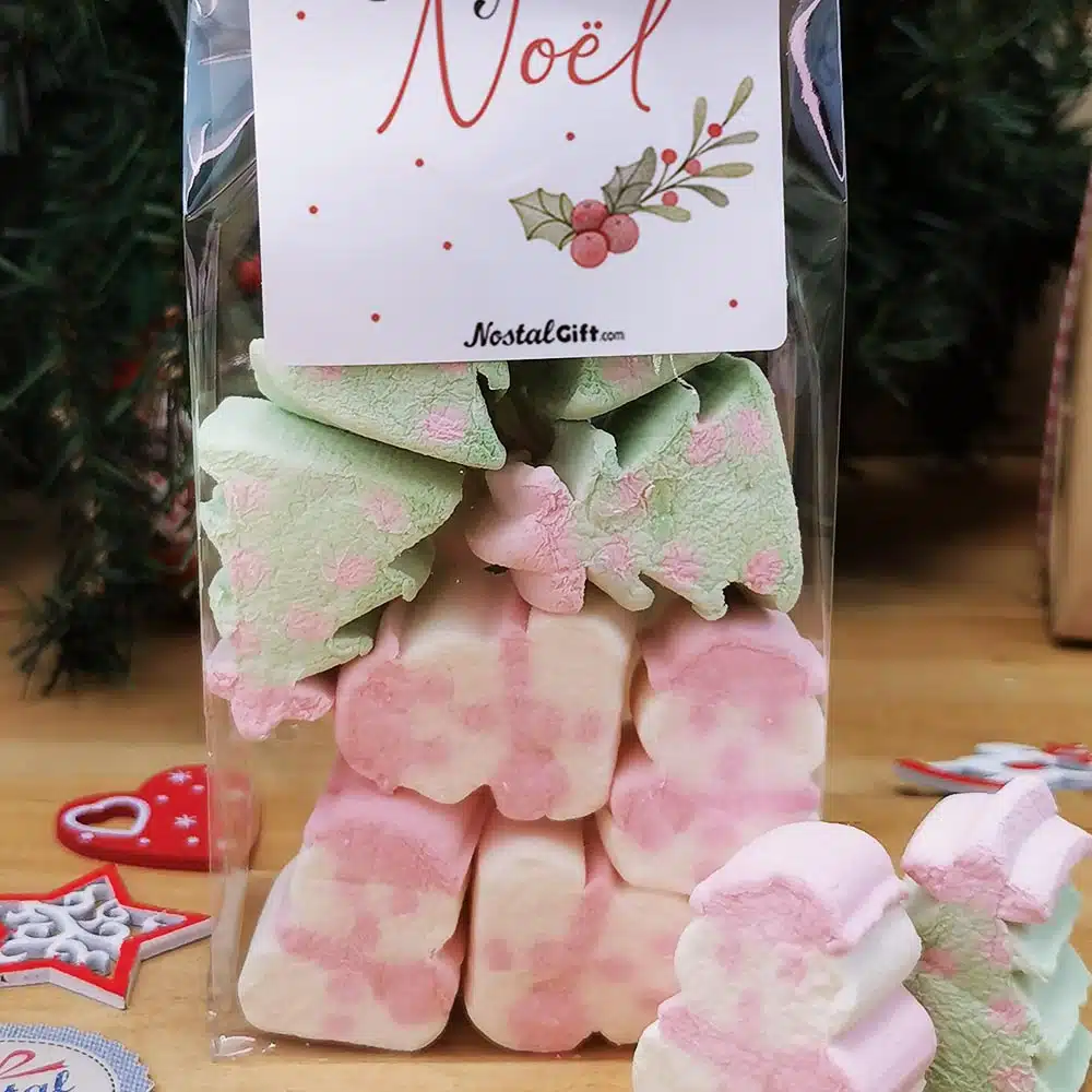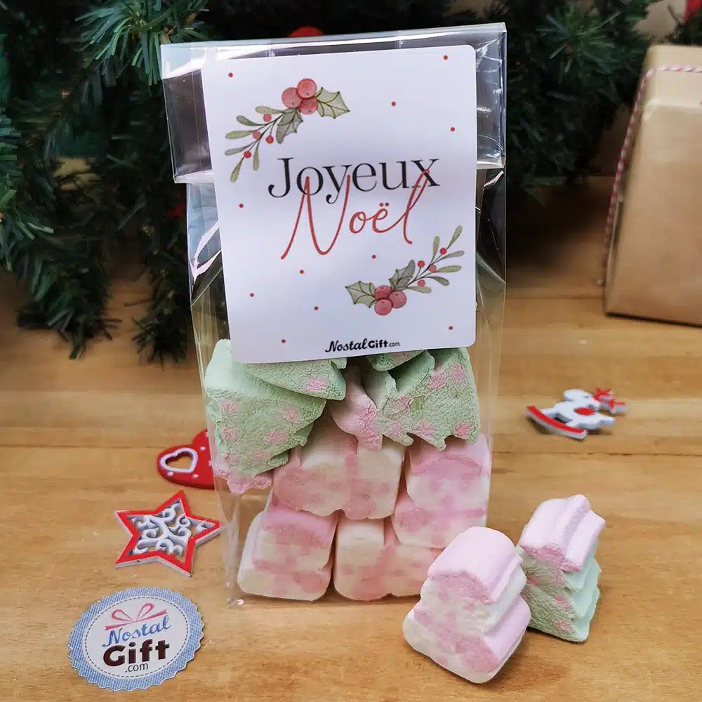 Sachet de guimauve sapin de Noël x 5 et bonhomme de neige x5 – “Joyeux Noël”