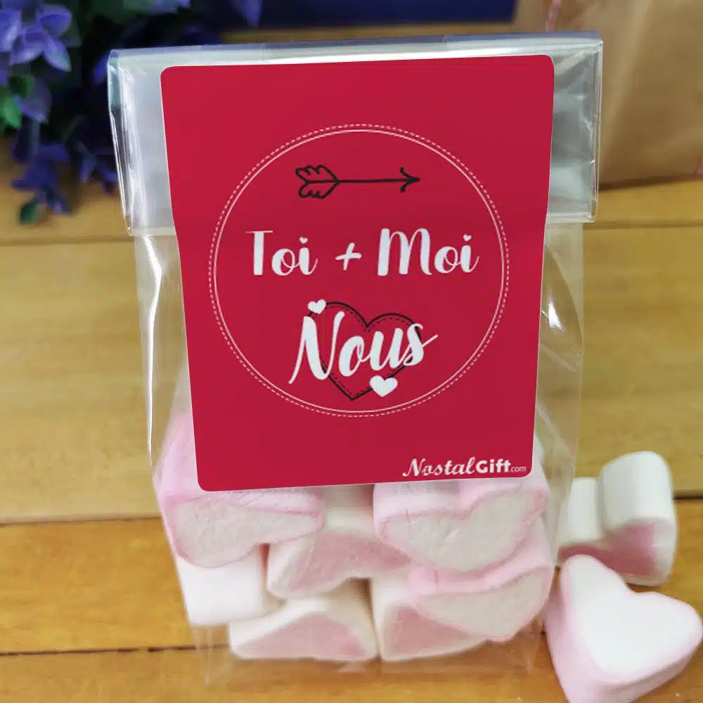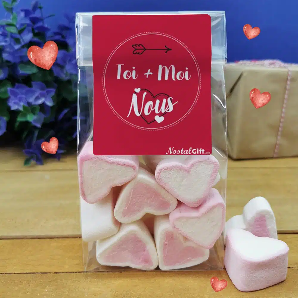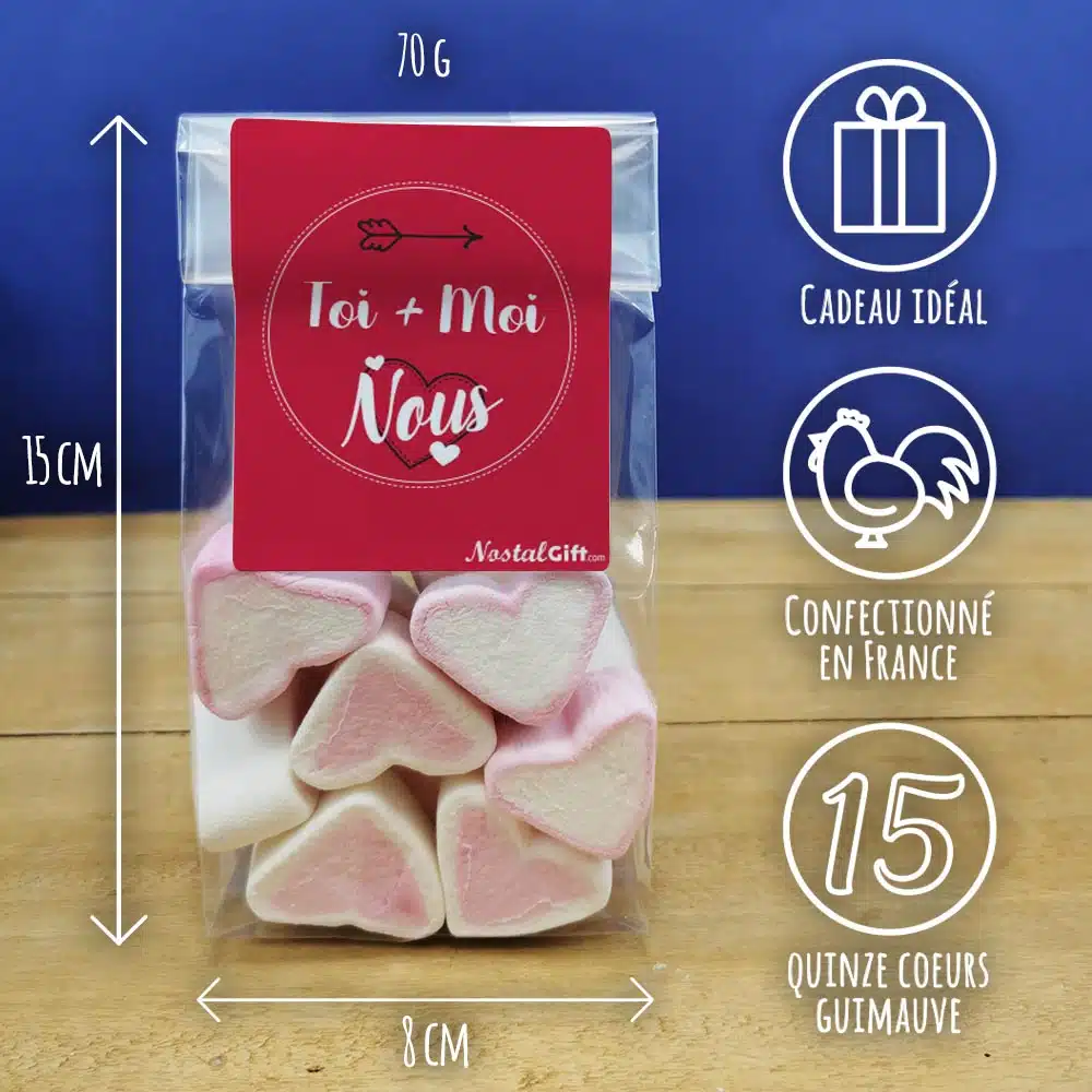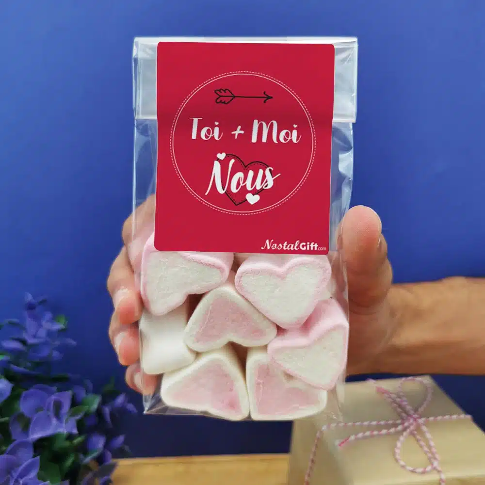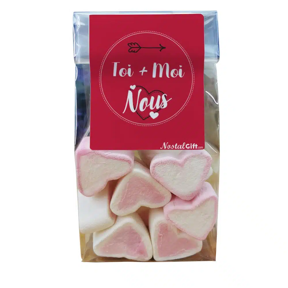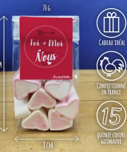 Sachet Gros Coeur en guimauve x 15 – “Toi + Moi”