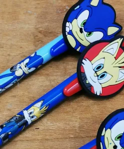 Voici dans notre boutique le lot de 4 stylos bleu Sonic ! Pour une bonne rentré scolaire ce lot est fait pour vous !