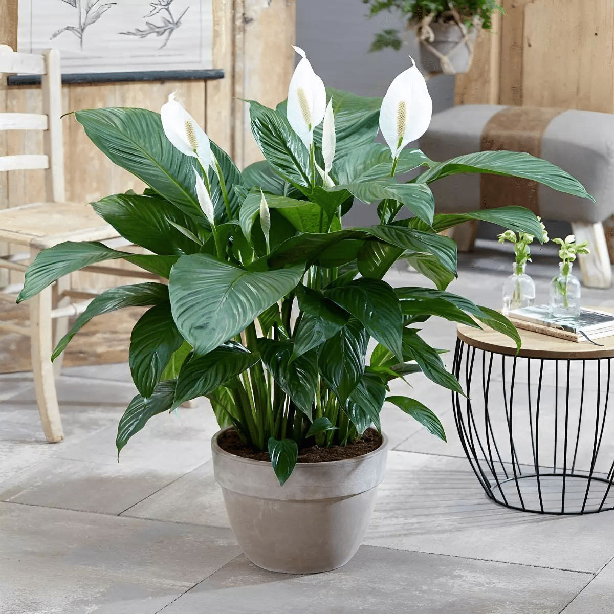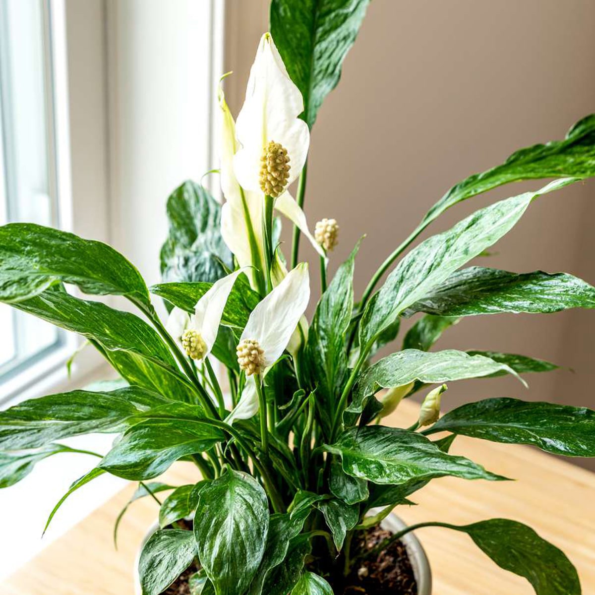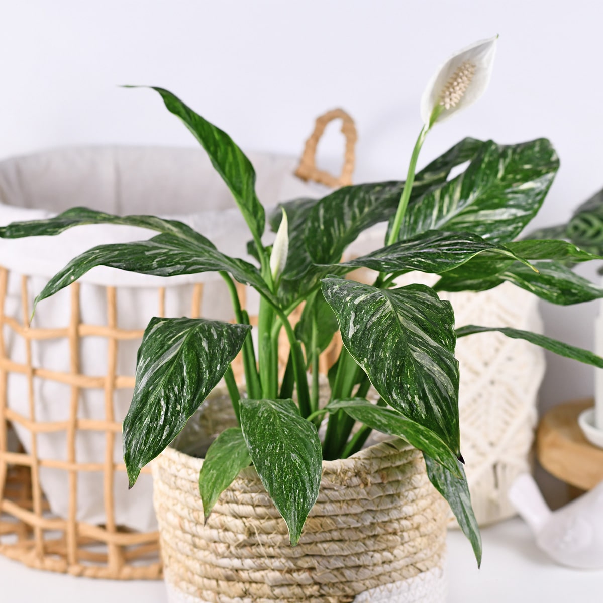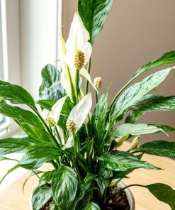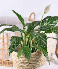 Pour son entretien, placez-le à la lumière indirecte, évitant le soleil direct. Arrosez régulièrement, en laissant le sol sécher légèrement entre les arrosages. Le Spathiphyllum apprécie une humidité ambiante plus élevée, en faisant une option idéale pour les salles de bains.