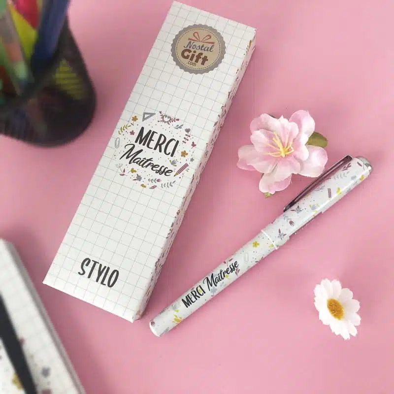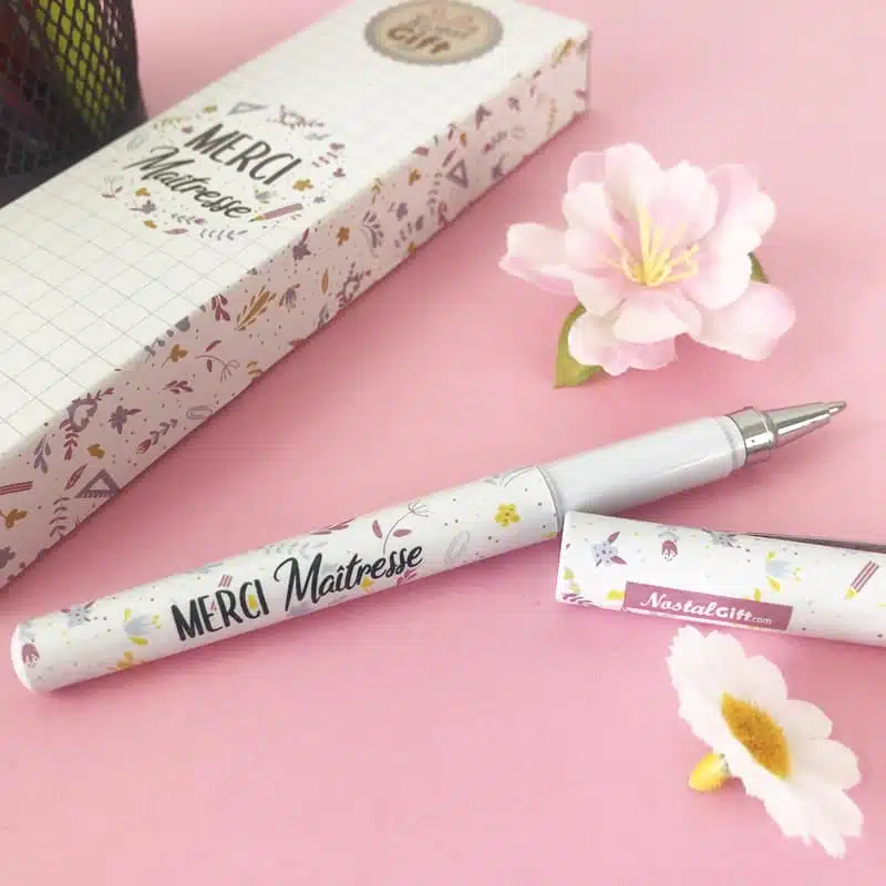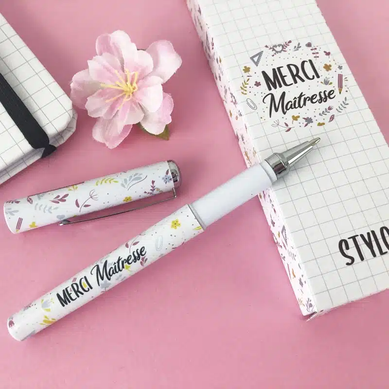 Stylo« Merci maîtresse » – Cadeau maîtresse – Collection florale