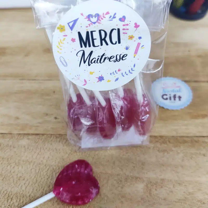 Retrouvez la Sucette en forme de Coeur à la cerise de notre enfance et offrez-là à votre maîtresse d’école adorée. Plein de coeurs à déguster pour la maîtresse de votre enfant et la remercier pour tout ce qu’elle a appris à votre enfant !