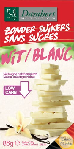 Caractéristiques de la Tablette Moins de Sucres Chocolat Blanc 85g de Damhert Nutrition