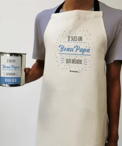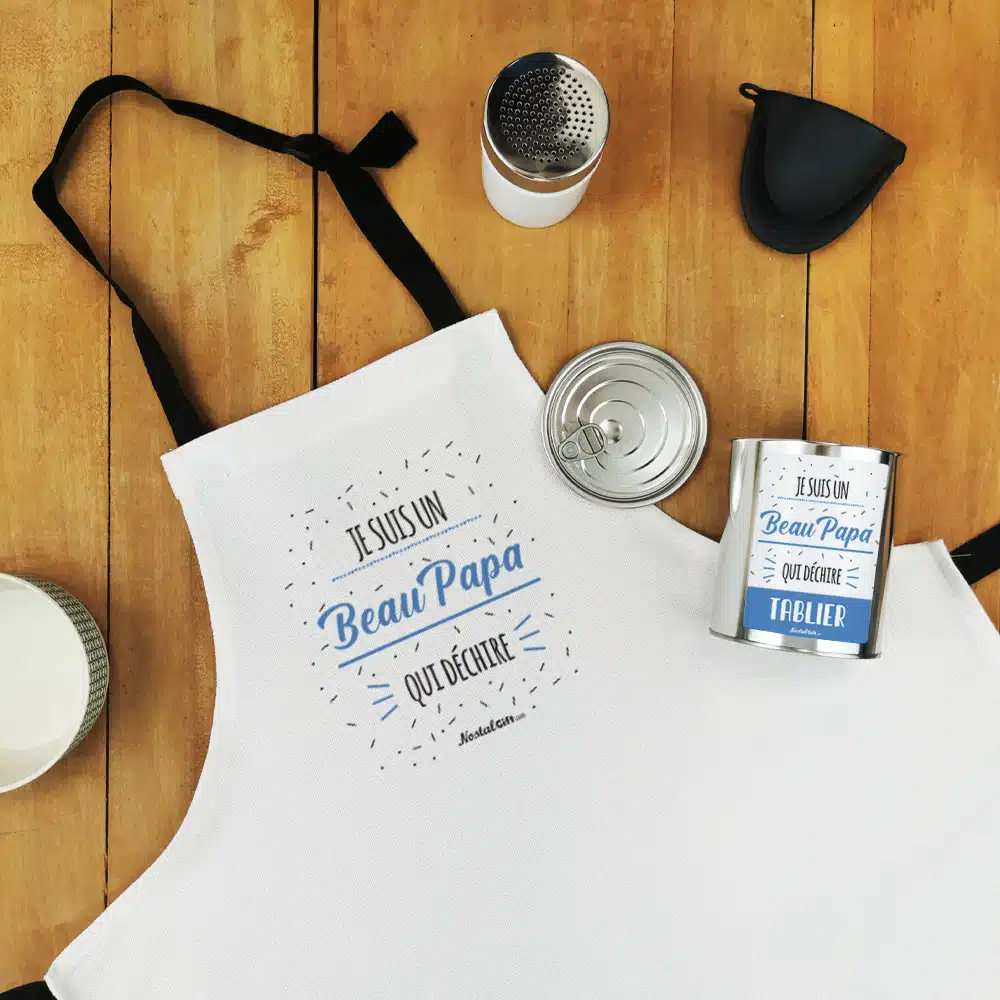 Le design de ce tablier de cuisine Je suis un beau papa qui déchire est conçu en France avec ses couleurs Bleu .