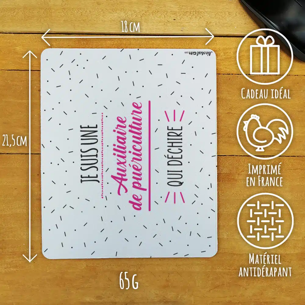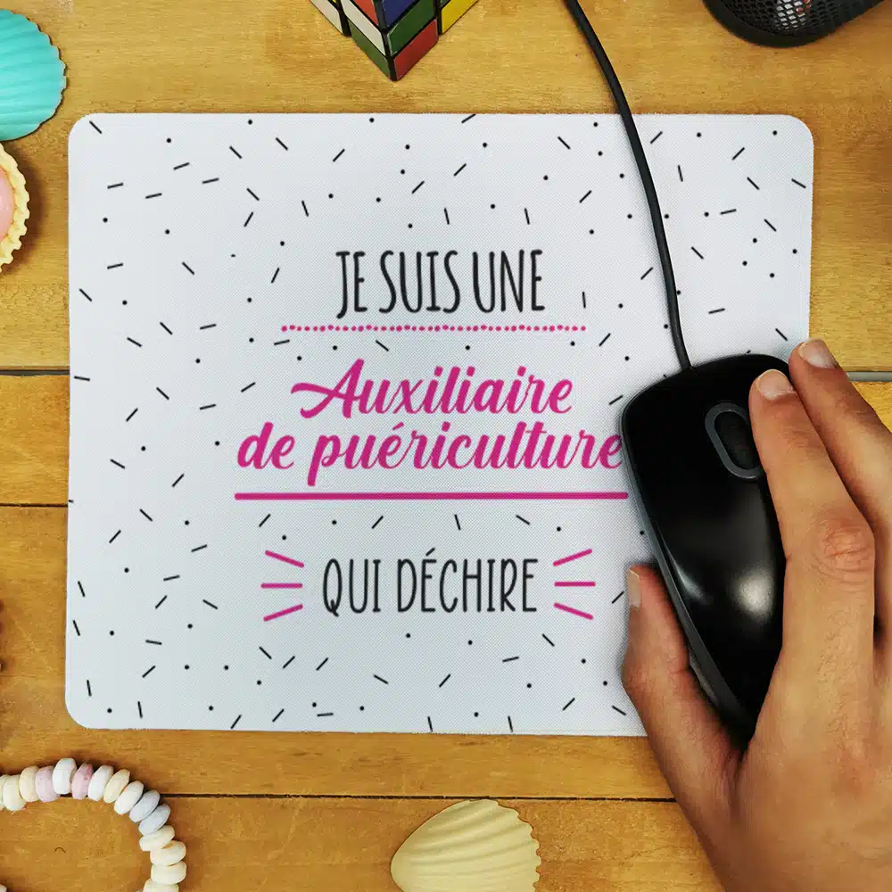 Tapis de souris “Je suis une auxiliaire de puériculture qui déchire”- Cadeau fin d’année scolaire
