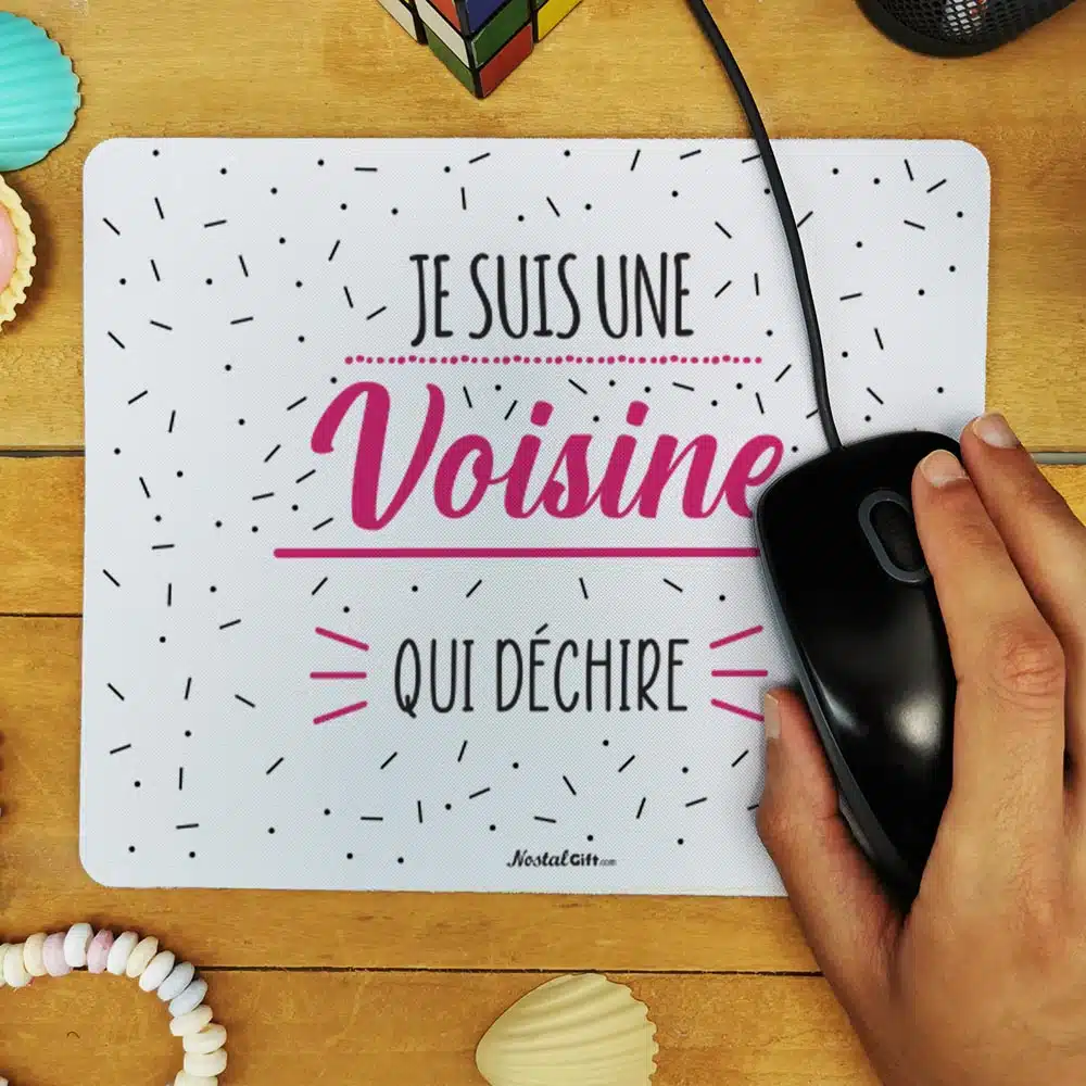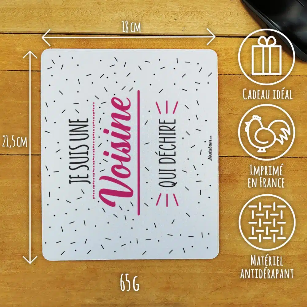 Tapis de souris “Je suis une voisine qui déchire”- cadeau personnalisé