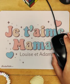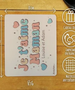 Tapis de souris “Je t’aime maman”- Cadeau pour la fête des mères ou un anniversaire – cadeau personnalisable