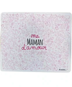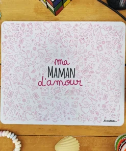 Offrez un cadeau pratique et original pour fêter un anniversaire ou Noël de votre maman avec ce tapis de souris, sur lequel est écrit “ma maman d’amour” avec des motif rose sur l’avant.