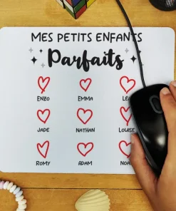 Tapis de souris rouge et rose “Mes petits enfants parfaits” – Cadeau pour la fête des grands pères ou la fête des grands mères ou fêter un anniversaire – cadeau personnalisé