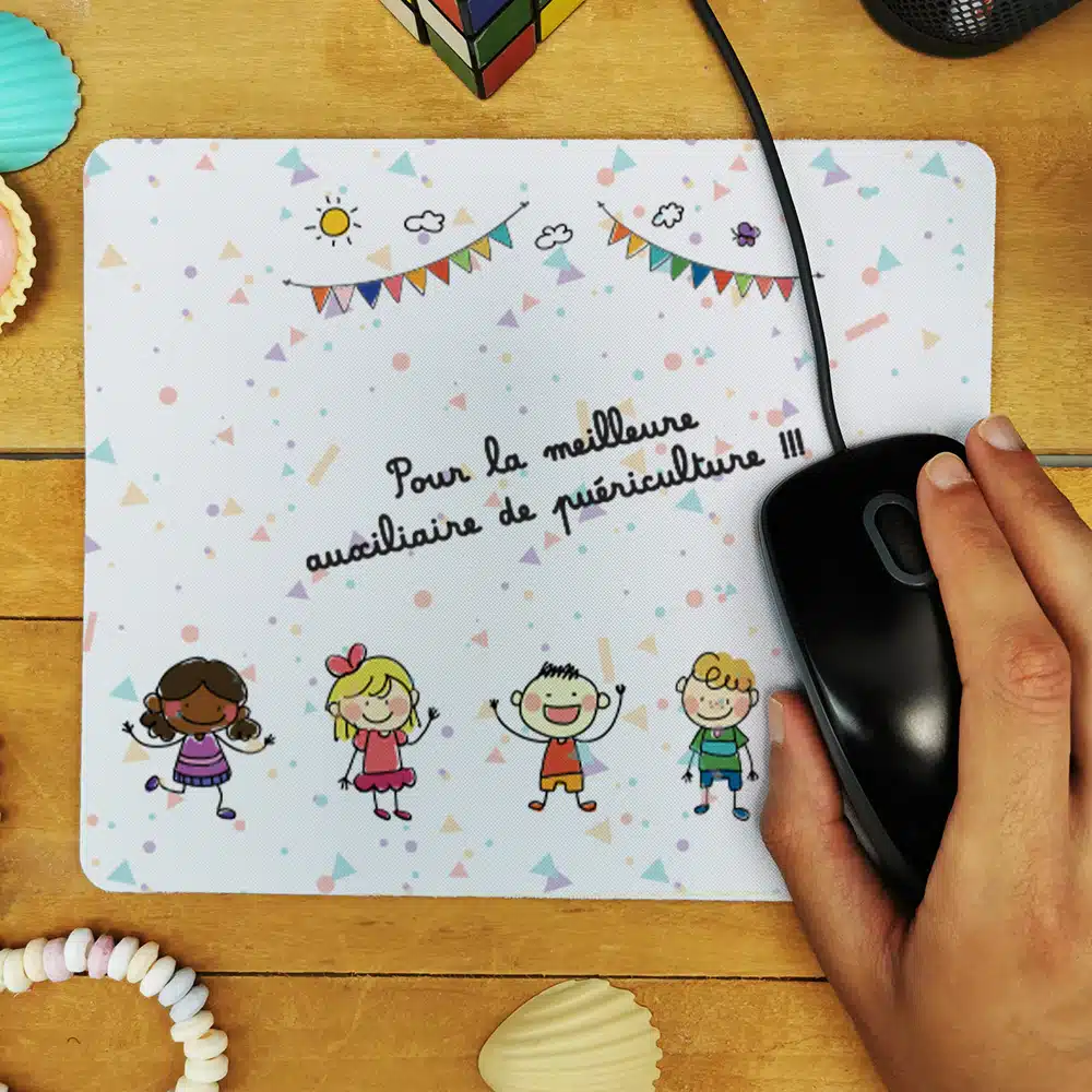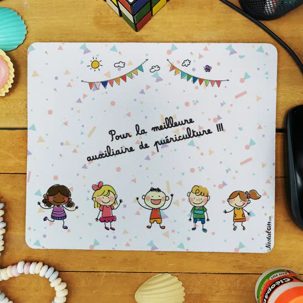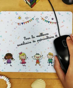 Tapis de souris multicolore Dessin d’enfants “Pour la meilleure auxiliaire de puériculture”