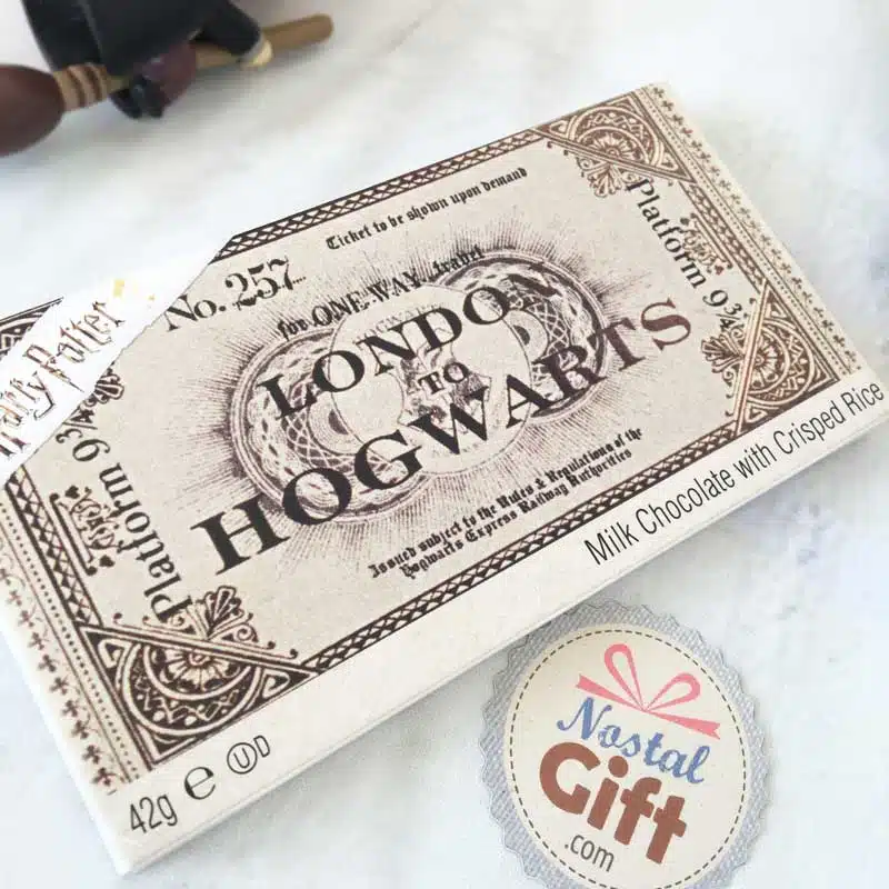 Envie d’aller à Poudlard ? Rien de mieux que ce ticket en chocolat pour monter à bord du Poudlard express et s’y rendre rapidement.