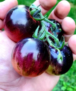 Parmi les variétés de tomates cerises les plus fascinantes, la Tomate Cerise Noire à la Fraise se démarque par son couleur profonde et son goût exceptionnel. Son petit fruit rond arbore des nuances allant du rouge foncé au noir violacé, rappelant à la fois la douceur sucrée de la fraise et l’intensité d’une tomate mûrie au soleil.