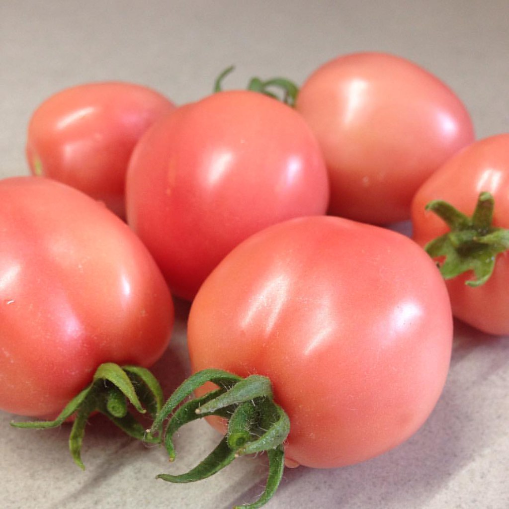 Héritage ancien pour les terrains ouverts et les serres. Tomate indéterminée, la plante atteint 250-300 cm (100-120 po) de hauteur. Tomates roses en forme de prune, poids 70-100g (2.5-3.5oz.) avec un excellent goût. Utilisez frais et en conserve.