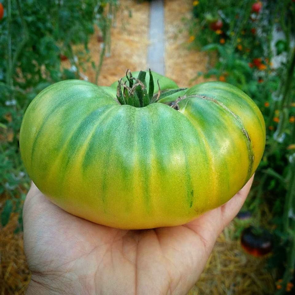 Les gros fruits vert émeraude de Géant Vert pèsent plus d’une livre, sont uniformes, très lisses et sans défaut. La couleur reste d’un vert pur même à maturité ! Les plantes sont très robustes et nécessitent un tuteurage. Saveur exceptionnelle et complexe, très sucrée et juteuse.