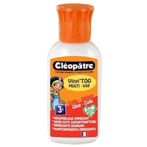 De fabrication française, Vinyl’TOO est la seule colle bricolage multi-matériaux créée pour les enfants à partir de 3 ans. C’est une colle à la texture épaisse adaptée aux enfants en classes de maternelles, qui assure sécurité et simplicité de nettoyage, qui sont des préoccupations importantes de l’encadrement des jeunes enfants .