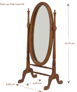- Matériaux : Bois de noyer massif avec détails dorés, étagères en acryliques et miroir à l’arrière.