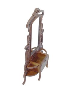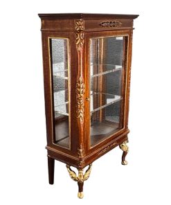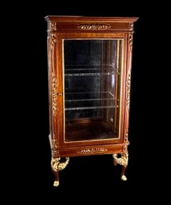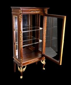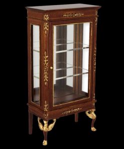 Cette vitrine style Empire en bois de noyer massif est une pièce élégante conçue pour embellir votre maison de poupée. Avec ses détails dorés et sa porte ouvrante, cette vitrine miniature à l’échelle 1:12 est un véritable chef-d’œuvre artisanal. Elle est équipée de deux étagères en verre et d’un fond miroir, parfait pour exposer vos miniatures les plus précieuses. Ce meuble combine raffinement et fonctionnalité et s’intègre parfaitement dans une ambiance Empire pour une décoration miniature luxueuse.