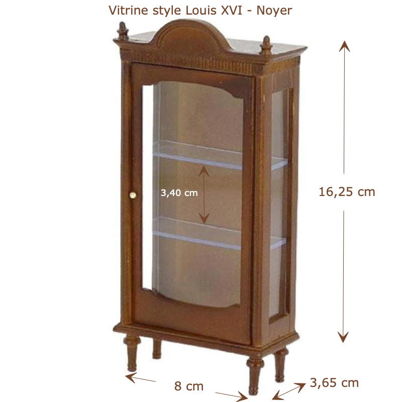 Apportez une touche d’élégance classique à votre collection de maisons de poupée avec cette vitrine style Louis XVI. Réalisée minutieusement à l’échelle 1:12, cette pièce en teinte noyer séduit par sa finition cirée et ses détails raffinés, parfaite pour exposer vos trésors miniatures avec grandeur.