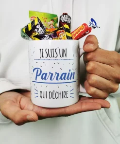 MUG “Je suis un parrain qui déchire” bonbons rétro 90 – Cadeau Parrain