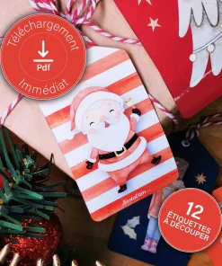 Lot de 12 étiquettes perforées à imprimer pour emballage cadeau