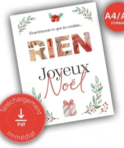 Cadeau argent noël “RIEN” affiche message surprise pour billets à offrir – a imprimer