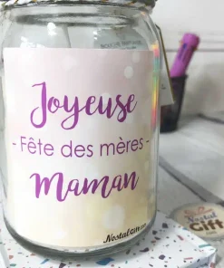 Bougie Jar “Joyeuse fête des mères maman” – cadeau fête des mères paillettes