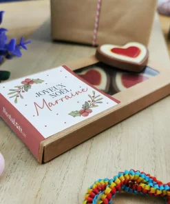 Cœurs au chocolat au lait et chocolat noir praliné x8 “Joyeux Noël Marraine” – Cadeau Noël