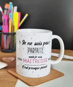 Mug – “Je ne suis pas parfaite mais je suis maîtresse” – Cadeau maîtresse